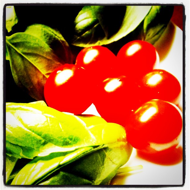 バジルとトマト収穫。ペペロンチーノで頂きました