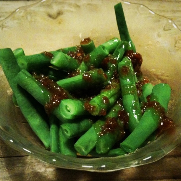 茹でただけだけど、美味しそうなインゲン。焼酎と…