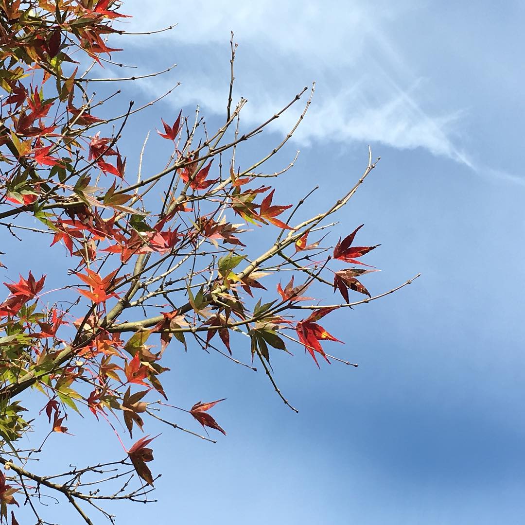 もみじの多いキャンプ場、爽やかな朝です。#japanesemaple #sky #camp #clouds #picoftheday #leaves #autumn #sundaymorning #japan #iphonegraphy #紅葉