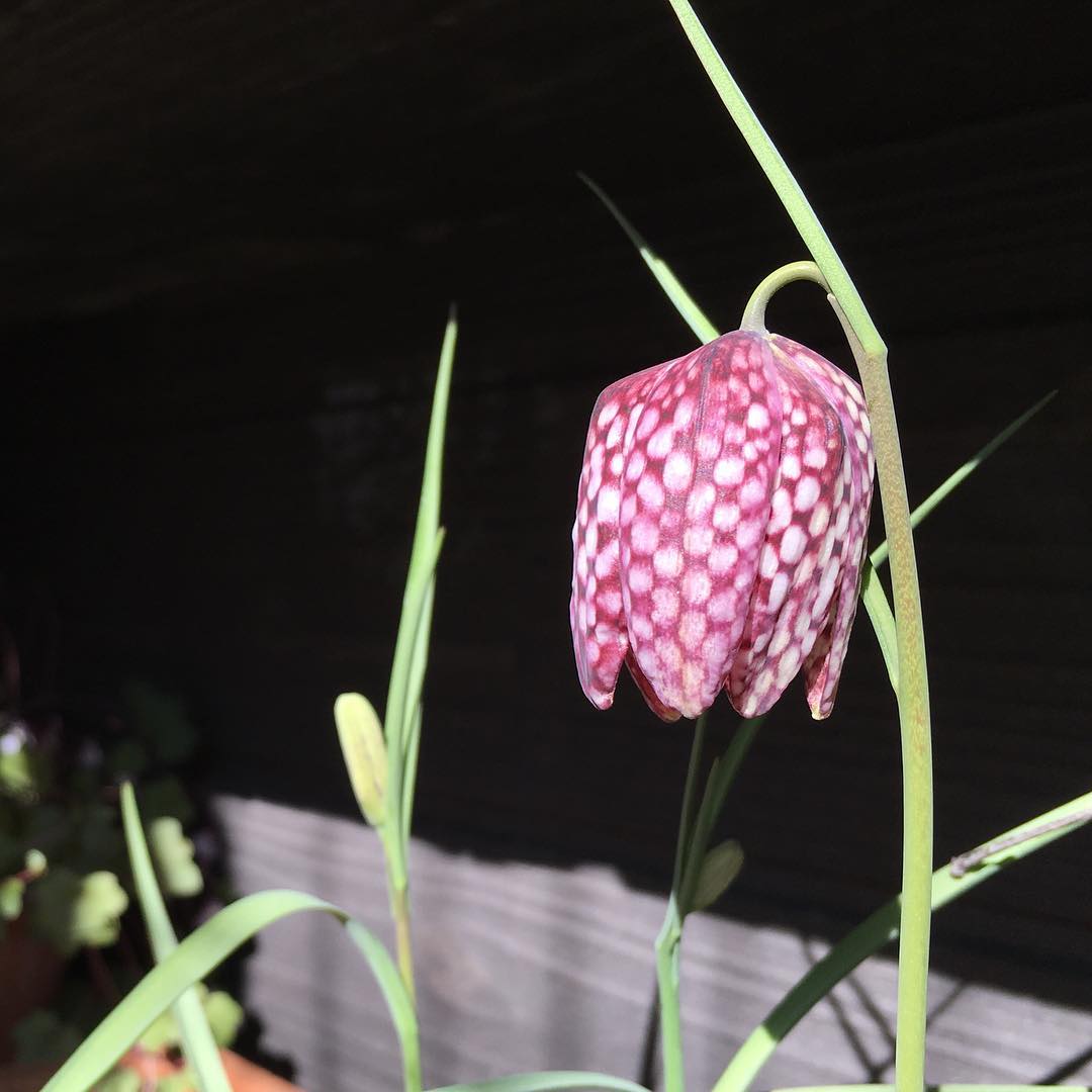 やっと咲いた。今日は暖かく気分良い Finally! #fritillaria #inmygarden #gardening #nature #plantlove #plant #growsomethinggreen #instagardeners_feature #fleur #flower #flowerpower #flowerlover #hppyflwrs #instaflower #floweroftheday #フリチラリア #holiday #thursday #lovemyhouse #ig_garden