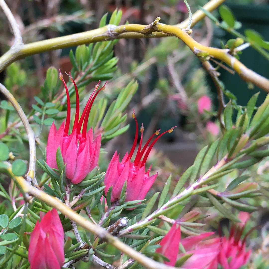 ダーウィニア、やっと咲いた。今日は寒いな…。でも去年の写真と比べたら今年の方が早く咲いたのね #darwinia #australia #gardening #inmygarden #flowers #fleur #flowerpower #flowerlovers #floweroftheday #gourgeous #red #blooming #lovemyhouse #ig_garden #ダーウィニア