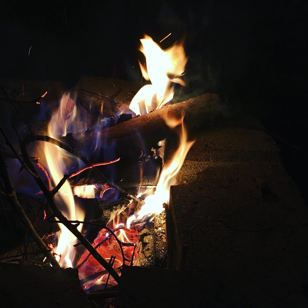 今日の焚き火はブロック塀の炉みたいなやつなので、デカくいけます。あー、楽しい。 #焚き火 #camp #bonfire #fun