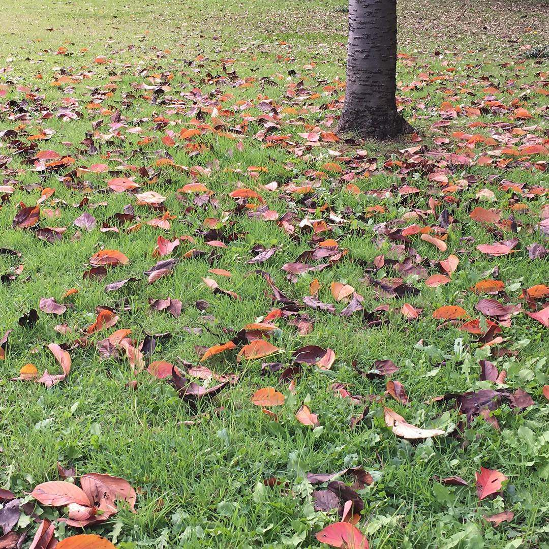 木陰ランチ。いい色になる前にほとんど落ちてしまいました、桜。因みに工事が多くて、池周辺立ち入れない箇所多し。 #hamarikyu #shade #lunch #picoftheday #park #tokyo #autumn #leaves