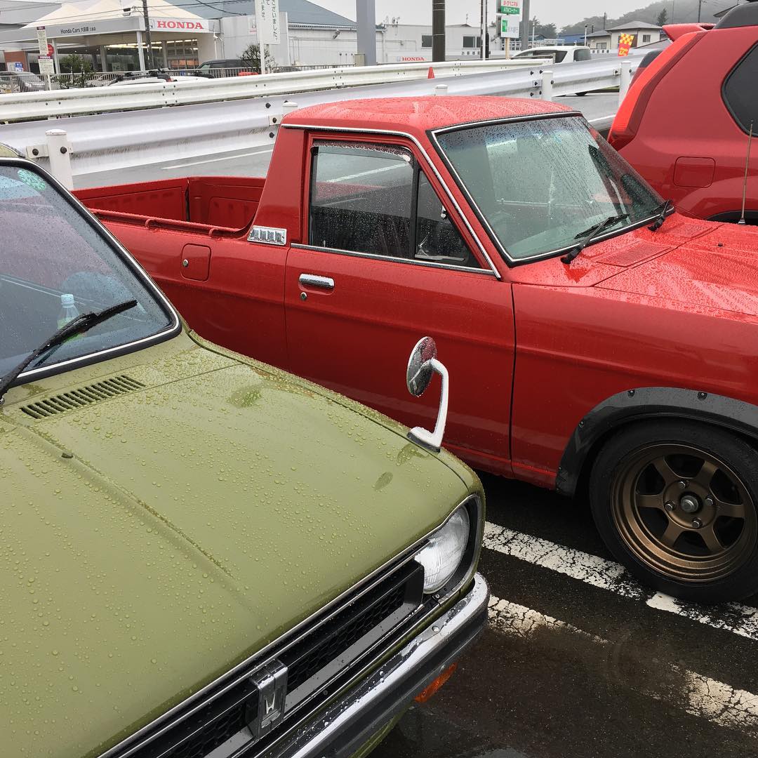 途中のサービスエリアで見かけたDATSUNが高速降りて寄ったスーパーの駐車場で隣に止まってた奇跡。とても綺麗に乗られてますね。雨よけ羨ましい(笑)#honda #life #datsun #classiccar