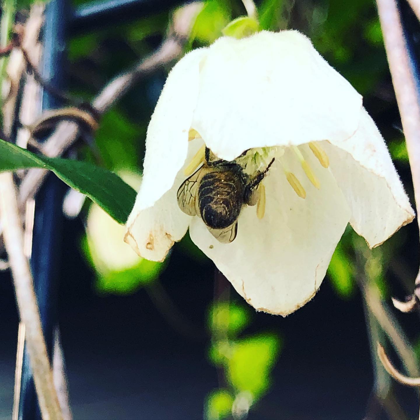 ミツバチが一心不乱。盗撮には気がついていません。#bee #clematis #bloom #gardening #ミツバチ #庭いじり ミツバチが一心不乱。盗撮には気がついていません。#bee #clematis #bloom #gardening #ミツバチ #庭いじり