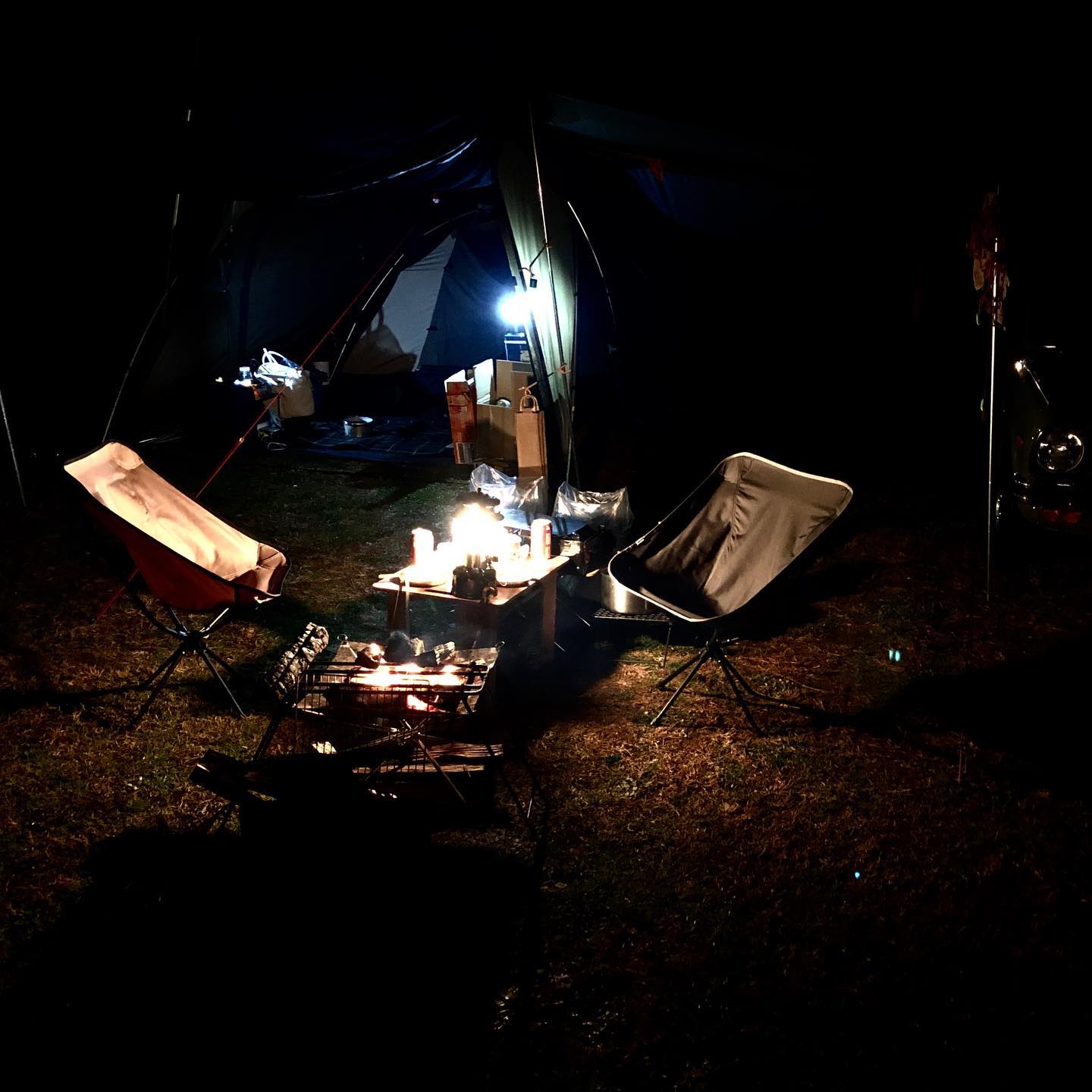 昼間の長雨でどうなる事かと心配しましたが、いい夜を過ごしてます。お腹いっぱいー。今日は組数も少なくて、🏕いい感じ。#キャンプ #焚き火 #ローストビーフ 年越しキャンプ #camping #bonfire #roastedbeef #yummy