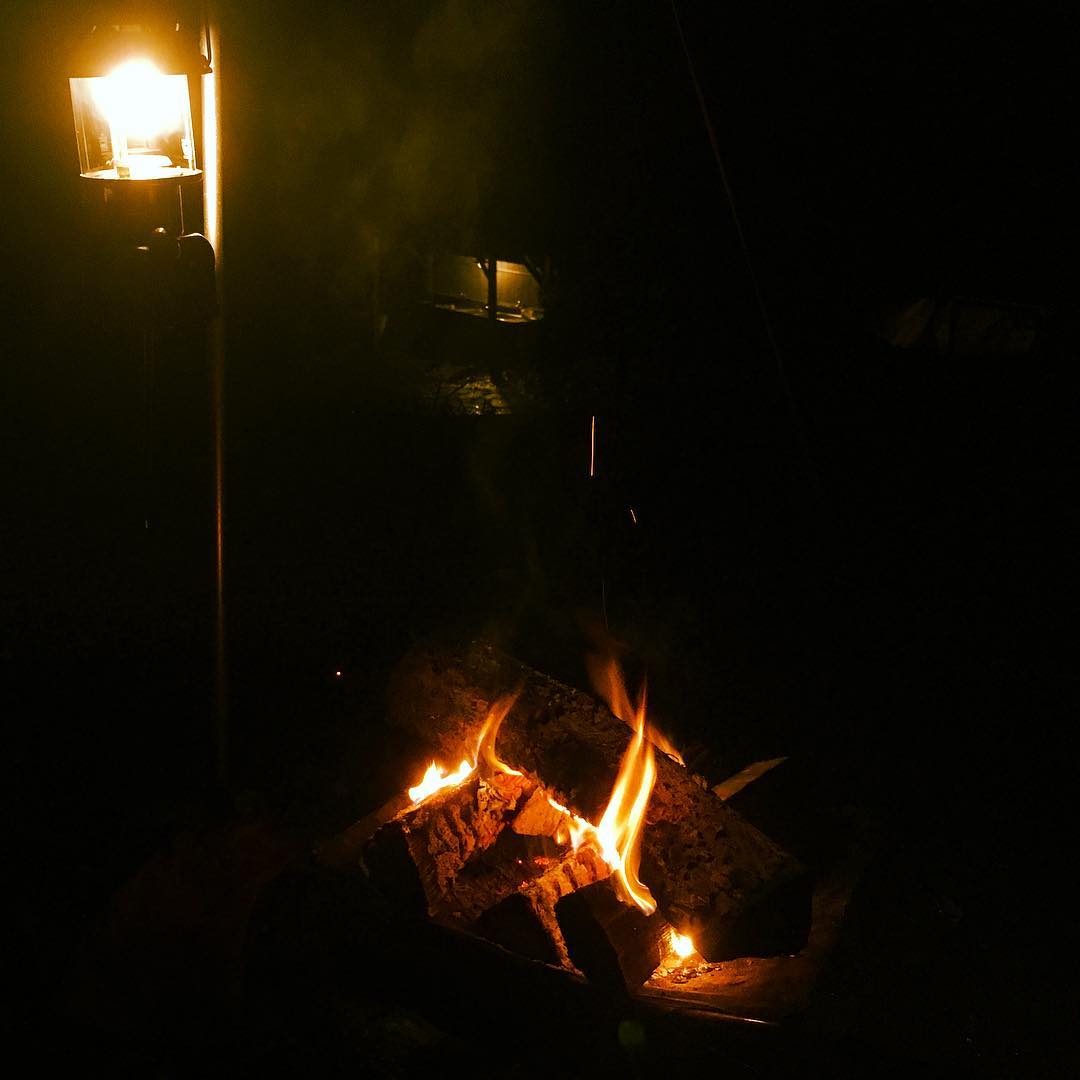 焚き火のおかげで暖かく雨の中…。#camping #bonfire