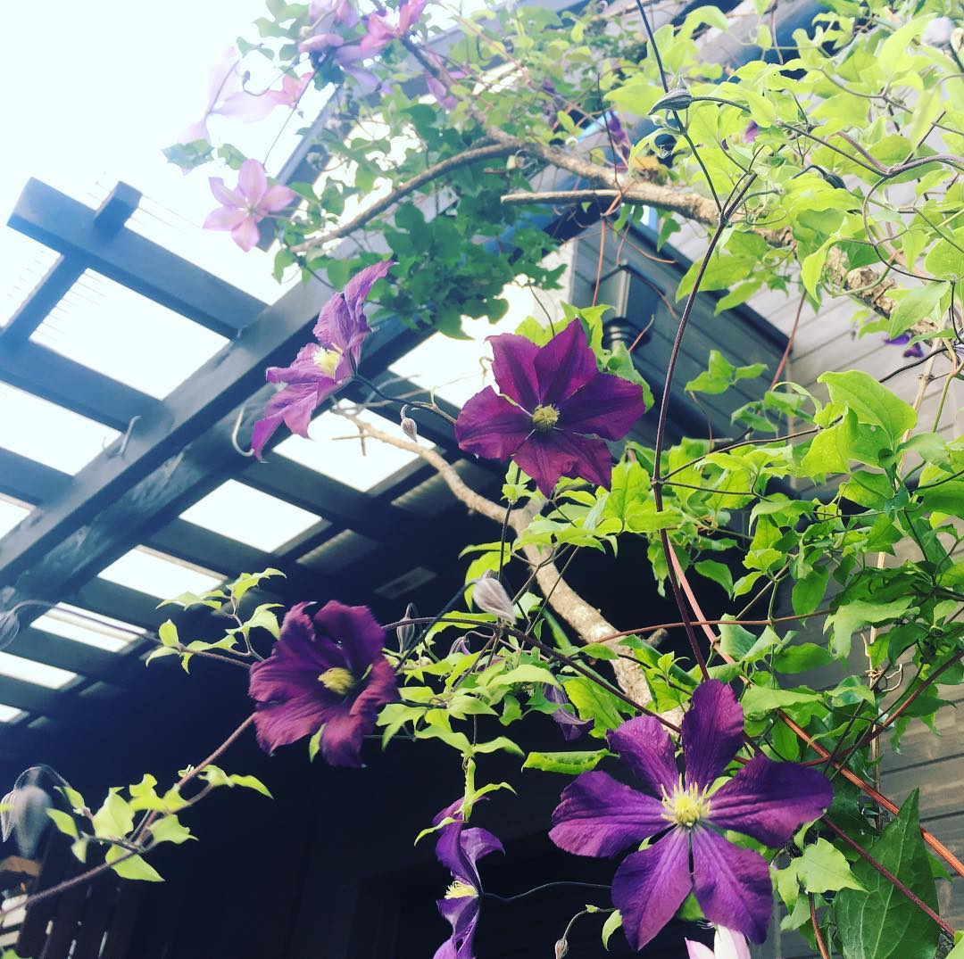 PFの前倒し。急いで帰って庭いじり、幸せ。クレマチス ボナンザだったかな?も咲きました。もっと高いところにはフォンドメモリーズ。 #clematis #gardening #favv_flowers #ig_garden #gardeningtips #nature #plantlove #plant #growsomethinggreen #botanical #instagardeners_feature #iphonegraphy #fleur #flowerpower #flowerlovers #ip_blossoms #hppyflwrs #instaflower #floweroftheday #plantsmakepeoplehappy #lovemyhouse #プレミアムフライデー前倒し #庭の花 #クレマチス