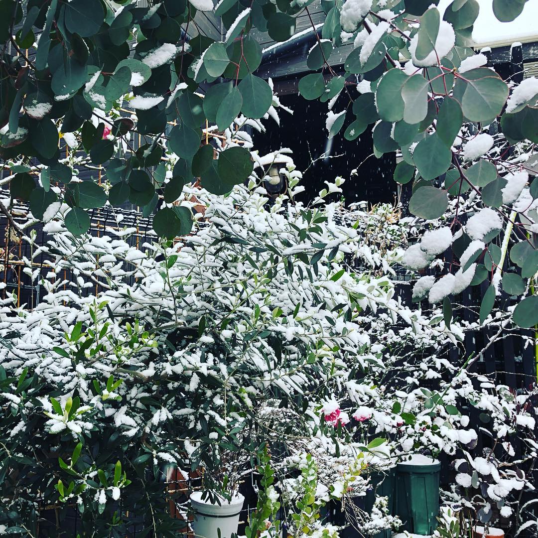 Snowing️昨日行ってきてよかった。#gardening #favv_flowers #ig_garden #gardeningtips #nature #plantlove #plant #growsomethinggreen #botanical #instagardeners_feature #snowing #olive #eucalyptus #雪景色 #庭 #オリーブ #ポリアンセモス