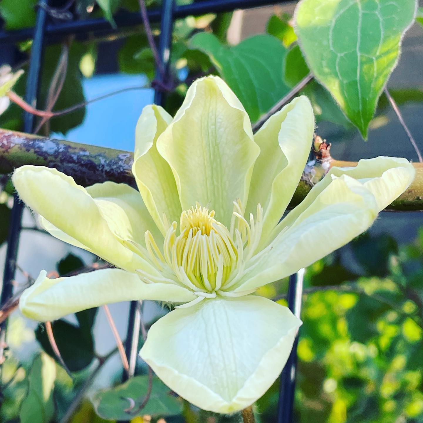 早朝まだ開ききってないけど、クレマチス”月宮殿”  爽やかな朝です。 #clematis #gekkyuden #gardening #morning #クレマチス #花好きな人と繋がりたい