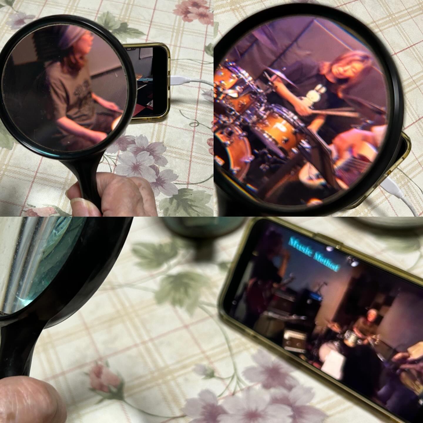 通院帰りに母のところへ。行くと毎回動画を見せろと言われ、拡大鏡?でみながら🥁や演奏について偉そうな事を言う(笑)まぁ楽しそうで良いんですけどね 通院帰りに母のところへ。行くと毎回動画を見せろと言われ、拡大鏡?でみながら🥁や演奏について偉そうな事を言う(笑)まぁ楽しそうで良いんですけどね