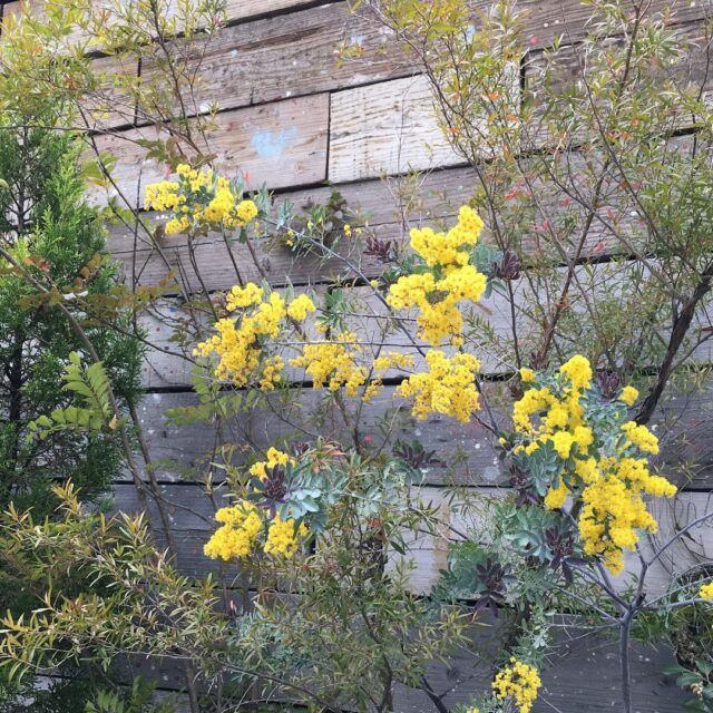 Good morning久しぶりの気持ち良い朝。足場板、合うなー(^-^) stage plank #acacia #mimosa #blooming #Leptospermumpetersonii #gardening #nature #plantlove #plant #growsomethinggreen #instagardeners_feature #nofilter #足場板 #lovemyhouse #ig_garden #春だね