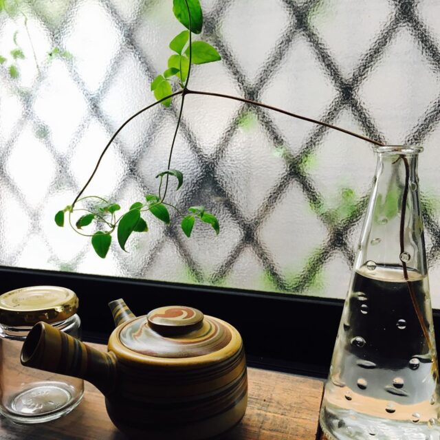 Good morning, clematis 枯葉を取るのに間違えて切ってしまった子で、早3ヶ月。茎から根が出てきました。上の葉3枚もここにきてから出てきた葉です。ガラス越しも同じClematis‘Wezrai Creem’”ウェズレイ・クリーム #clematis #gardening #nature #plantlove #plant #growsomethinggreen #instagardeners_feature #nofilter #iphonegraphy #lovemyhouse #kitchen #view #台所 #クレマチス #急須