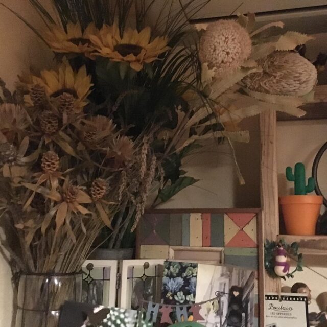 1:00am ごちゃごちゃだけど好きな一角。#lovemyhouse #driedflowers #Leucadendron #lavender #protea #Banksia #zakka #goodnight