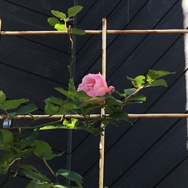 高〜いところで、ぽつん とつるバラ咲いた。Only one blooming #rose #lovemyhouse #gardening #nature #plantlove #plant #growsomethinggreen #instagardeners_feature #nofilter #iphonegraphy #pink #pretty