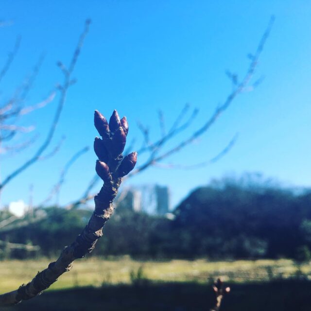 やっと来れた公園ランチ。ジュウガツザクラじゃありません、ソメイヨシノらしき桜の蕾が出てました。ハマリ🐈にも会えて良かった。因みに梅は咲いてます。#lunch #park #hamarikyu #tokyo #sakura #bud #bluesky #growsomethinggreen #tgif #flowerpower #floweroftheday #iphonegraphy