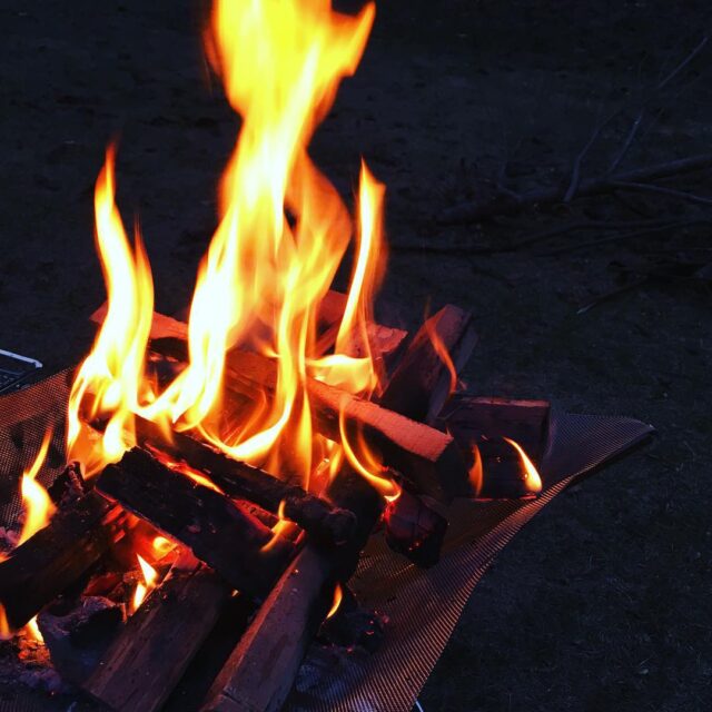 我慢できない 焼き台買って良かった。運搬の都合上、ステンレス網の焚き火台です。クルクル巻けるのでコンパクト!うちの車にはもってこいです。あったか〜い🤗楽しい〜 Bonfire LOVE! #bonfire #picoftheday #saturday #camp #焚き火 #ユニフレーム