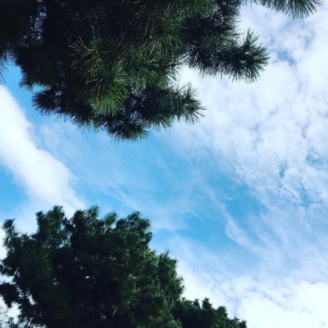 Lied down on the grass 木陰ランチ。とうとうレジャーシートを導入、あ〜気持ちいい。寝転んで…真上の図 枕欲しいな(笑) #lunch #picoftheday #hamarikyu #park #tokyo #sky #clouds #pine #tree