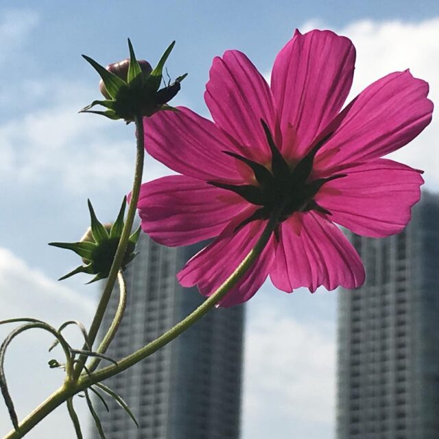after shade lunchありがちなコスモス撮影。まぁまぁかな #cosmos #flowerlovers #flowerstagram #tokyo #park #hamarikyu #buildings #plantlove #plant #nofilter #iphonegraphy #koolplant #コスモス