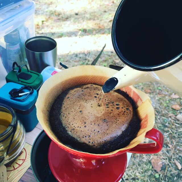 ️Morning coffee 本日二回目。貸切状態の夜も明け…名残惜しい。#camping #husband #morning #coffee #coffeetime #picoftheday #珈琲