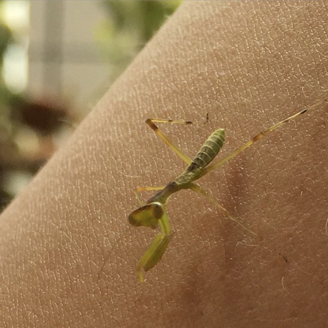 今年初のカマキリ赤ちゃん。飛び乗ってきた #happy #praying #mantis #baby #gardening #lovemyhouse #bugs #garden #カマキリ #虫といっしょに庭づくり