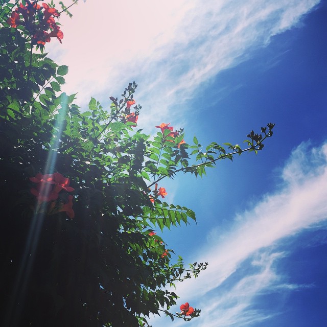Campsis grandiflora ノウゼンカズラ #picoftheday #flowerlover #flowerpower #floweroftheday #sky #cloud #sunshine #hamarikyu #park #tokyo #iphonegraphy #ノウゼンカズラ
