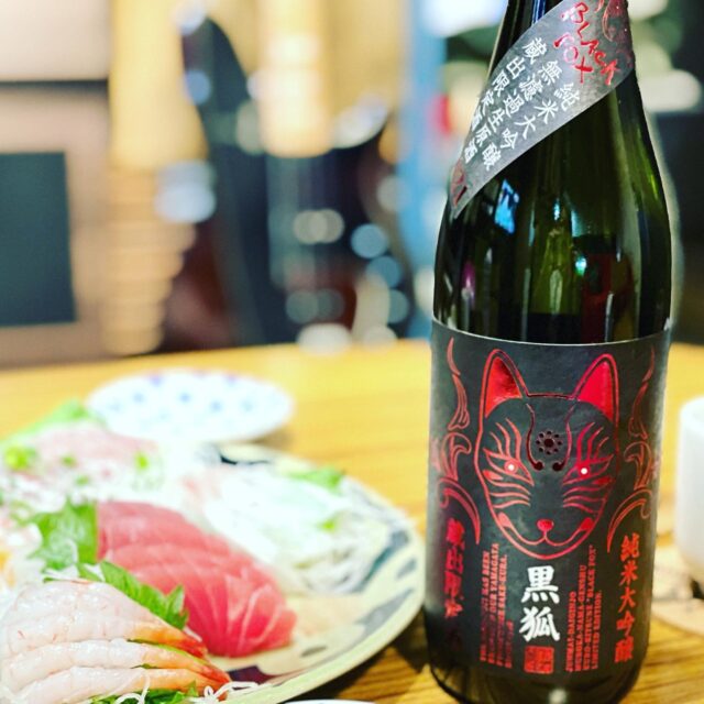 誕生日の宴。おめでとう!ジャケが、ちょっと怖い狐ですが、幼少期、山形に住んでたということもあって、栄光富士、黒狐。純米大吟醸無濾過生原酒蔵出限定品でチョイス。美味かったのでよかった #hbd️ #husbandandwife #bass #日本酒 #栄光富士 #黒狐 #山形 #宅飲み #誕生日おめでとう