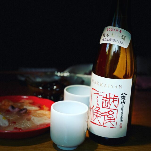 純米大吟醸 限定生原酒の八海山 越後で候 買ってみた。あるのはずーっと知ってたけど。かおりは好みだったけど…私達はやっぱり無濾過生原酒がいいな…。#sake #holiday #八海山 #越後で候 #宅飲み