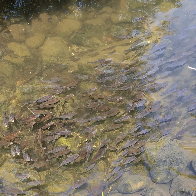 残念ながら黒ばかりですが鯉の稚魚が沢山居ました。違ったりして(笑)たまに白みがかったのが居たから多分大丈夫。。Only black KOI babies. #京成バラ園 #koi #picoftheday
