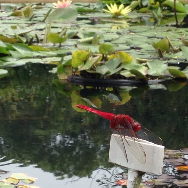 Red dragonfly️夢の島に来ました。こんなに真っ赤な赤トンボは初めてです #botanicalgarden #tokyo #dragonfly #nature #lotus #niceweekend #nofilter