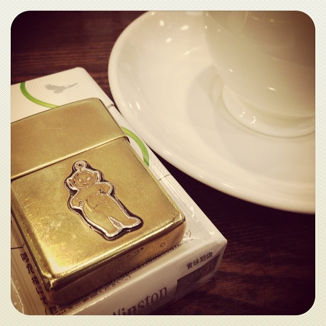 初めての大岡山。次は禁煙だから今のうちに… #coffee #cigarette #earlybird #earlybirdlove #teletubbies #zippo #pins #original #handmade