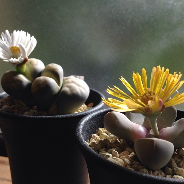琥珀と魔玉、ダブルで咲きました。 Finally Blooming :D #lithops #blooming #flower #flowerlover #plantlovers #succulent #succulove #succulentjunkie #succulenthoarder #suculenta #suculentas #succulents #cactuslove #cactus #cactusgram #cactusjunkie #cacti #sedum #gardening #nature #plant #flower #nofilter #koolplant #instagramhub #instago #instagram #webstagram #instalove #igs #flowerpower