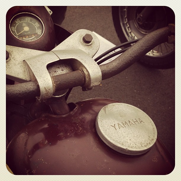 旧車天国に来ました。#earlybird #earlybirdlove #picoftheday #jj_forum #jj #igdialy #iphonegraphy #color #igers #instamood #pretty #ig #cool #oldstyle #yamaha #bike car #tokyo