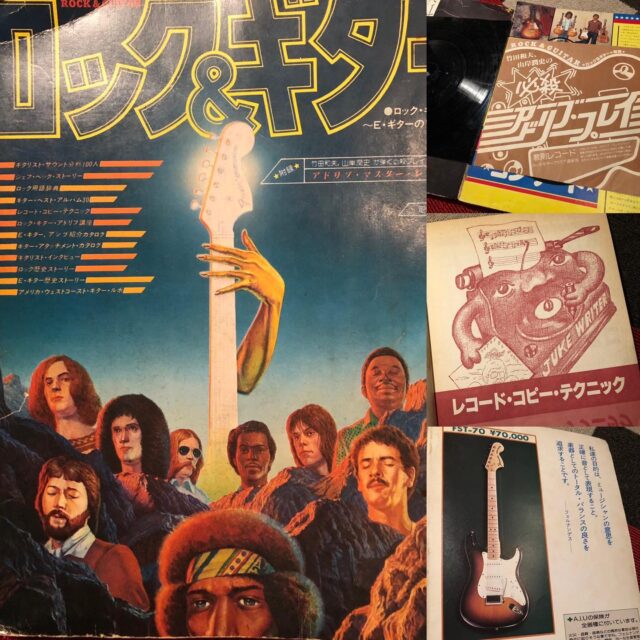 貴重な雑誌を見せてもらった。1977年のロック雑誌、ソノシートが付録。今も現役のギタリストが若手だったり、面白かった。#ロックアンドギター #1977 #楽器の日 #magazine #rockandguitar