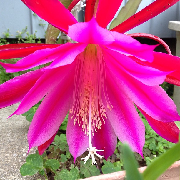 今朝仕事に行く途中出会ったヘロヘロなサボテンからこんな凄い花が咲いてました!introduce the neighborhood cactus flower!! #amazing #stunning #awesome #neighborhood #cactusjunkie #cactuslove #cactus #cactusgram #cacti #gardening #nature #plant #flower #nofilter #koolplant #instagramhub #instago #instagram #webstagram #instalove #igs #flowerpower #flowerlover #instaflower #floweroftheday