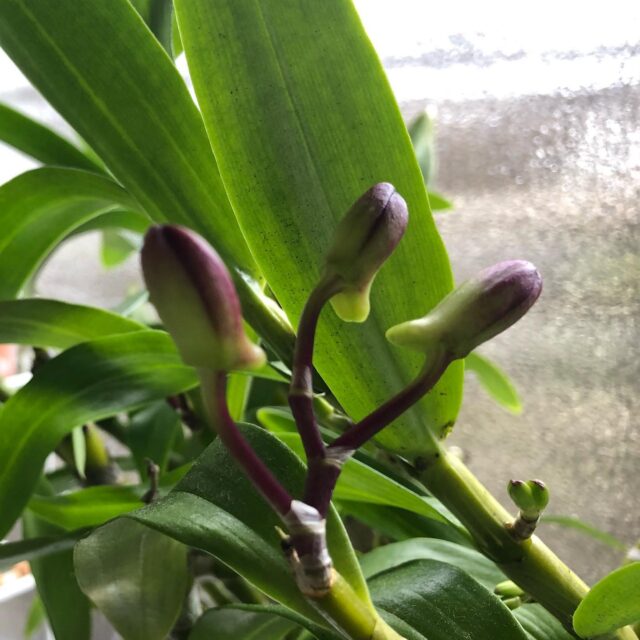 お風呂栽培の蘭たちが調子をあげてきた。デンドロビウムと胡蝶蘭🏵楽しみだ。あと1ヶ月ぐらいかな。#お風呂栽培 #デンドロビウム #胡蝶蘭 #phalaenopsis #orchid #dendrobium #ofuro #gardening #floweroftheday #showerroom #flowerpower