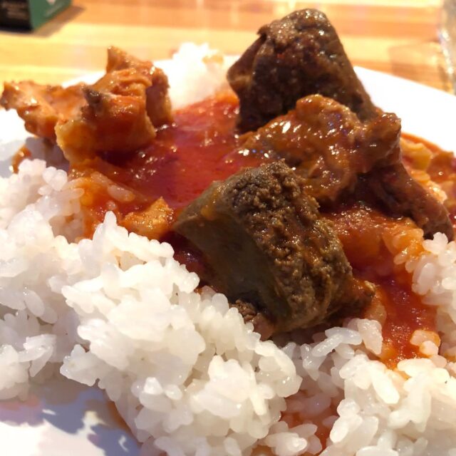 今日の晩御飯 、アフリカンシチュー。トマトペーストか基本で辛いけど美味しかったレバー、手羽、牛ブロック。お腹いっぱいでお酒はあまり飲めなかった… #african #stew #dinner #bar #ばんごはん #アフリカンシチュー #バー