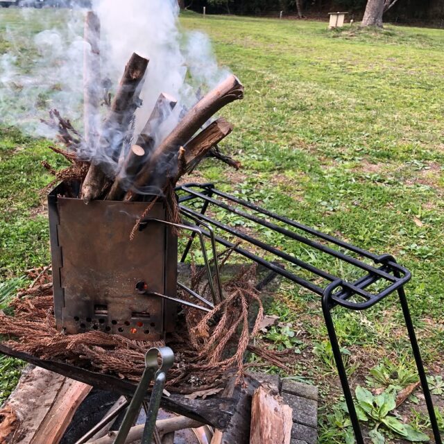 鳥が羽を広げてばっさばっさと飛ぶ音まで聞こえる静かなところで。ヤギと遊んで、自宅で剪定したトネリコ使って焚き火スタート。嗚呼幸せ。 #camping #goat #bonfire #平日キャンプ #キャンプ #焚き火 #貸切キャンプ