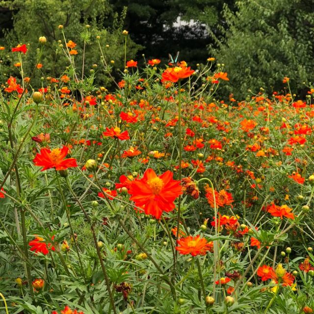 今日は絶好の木陰ランチ日和。アオスジアゲハがいるのわかるかな… #hamarikyugardens #cosmos #lunch #feelgood #キバナコスモス #浜離宮恩賜庭園 #はなまっぷ #年パス