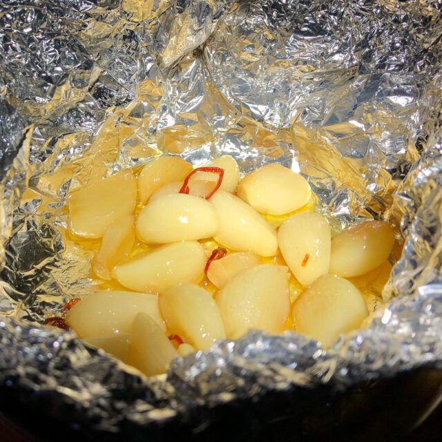 Garlic Ahijo ちょいオイル控えめ おいし〜 #garlic #ahijo #camping #outdoors #cooking #キャンプ飯 #酒がすすむ #ニンニクのオイル煮 #pakistanpinksalt #oliveoil