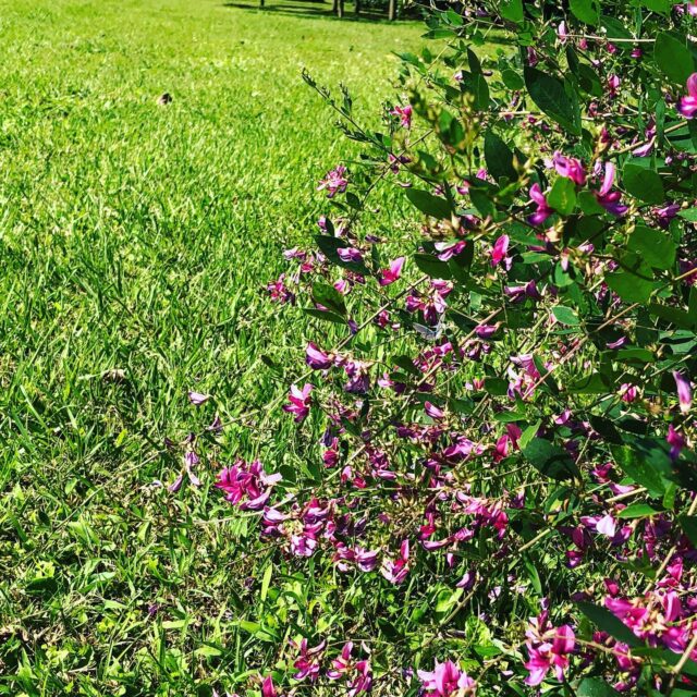 この中に花蜂が居るんだけど…わかんないか(笑)今日の木陰ランチは松の下、寝っ転がって秋の風を感じた。ツクツクホーシが鳴いてます。#Japaneseclover #hamarikyugardens #bee #lunch #tgifridays #浜離宮恩賜庭園 #年パス #萩 #木陰ランチ #花のある風景