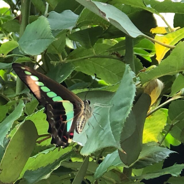 水やりしてると、どこらかともなく飛んでくる。アオスジアゲハのお休み処 この前のとは違う子だ。#アオスジアゲハ #庭いじり #お休み処 #クリスマスローズ #butterfly #calmdown #gardening