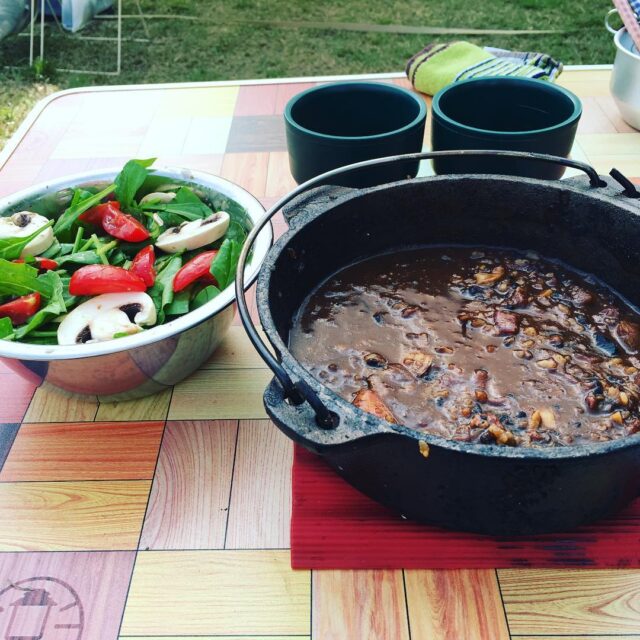 昨夜はまさかの雨、でもパエリアは美味しかった。残りをイカ肝トマトと煮込んで今朝はリゾット風。朝から満腹です。 #goodmorning #camping #outdoor #breakfast #paella #risotto #yummy #キャンプごはん