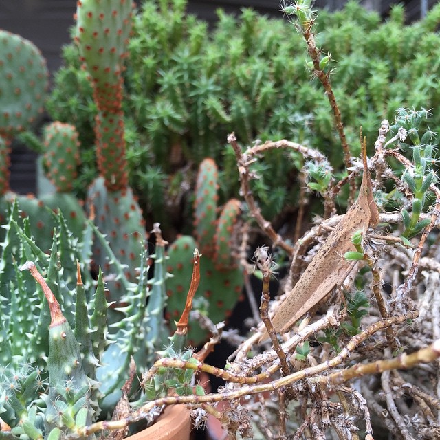 枯葉かと思って取ろうと思ったらバッタ。 #succulent #succulove #aloe #succulentjunkie #succulenthoarder #suculenta #suculentas #succulents #cactuslove #cactus #cactusgram #cactusjunkie #cacti #sedum #gardening #nature #plantlove #plant #nofilter #iphonegraphy #koolplant #grasshopper #バッタ #アロエ #サボテン