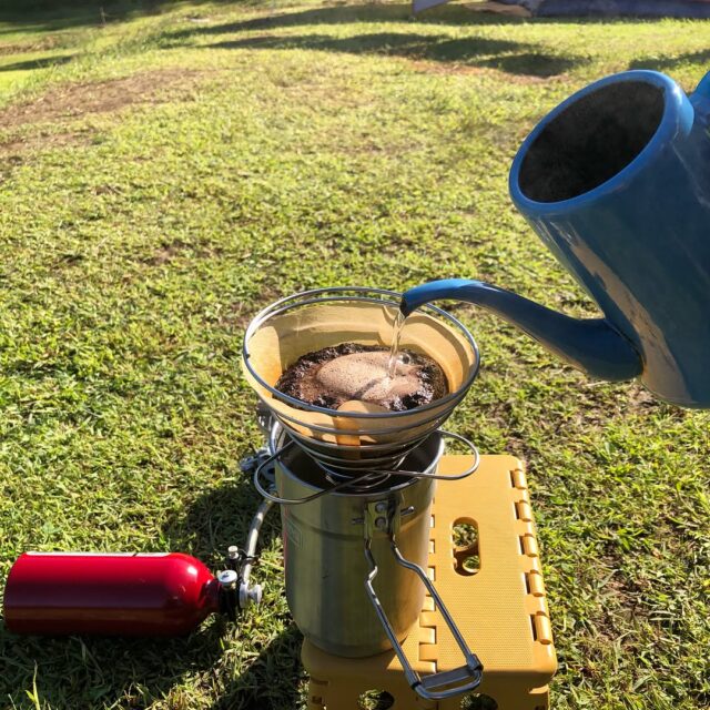 今朝も快晴、コーヒーが美味しい朝。昨日頂いたミョウガを紫蘇と一緒に薬味に加えて、美味しい朝ごはん。よく寝た! #camping #coffee #outdoor #breakfast #tofu #卵納豆ご飯 #冷奴 #珈琲 #オートキャンプ #平日キャンプ #キャンプ飯