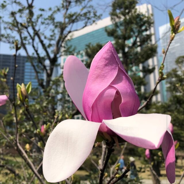 木陰ランチ、紫木蓮最高。普段、全然人いないのに今日はすごい(笑)依田さん効果かな? #紫木蓮 #シモクレン #magnolia #purple #浜離宮恩賜庭園 #年パス #sakura #桜 #prum #ハナモモ #lunch #fav_flowers_ #botanicalgarden #hamarikyugardens #tokyo #beautiful #flowerstagram